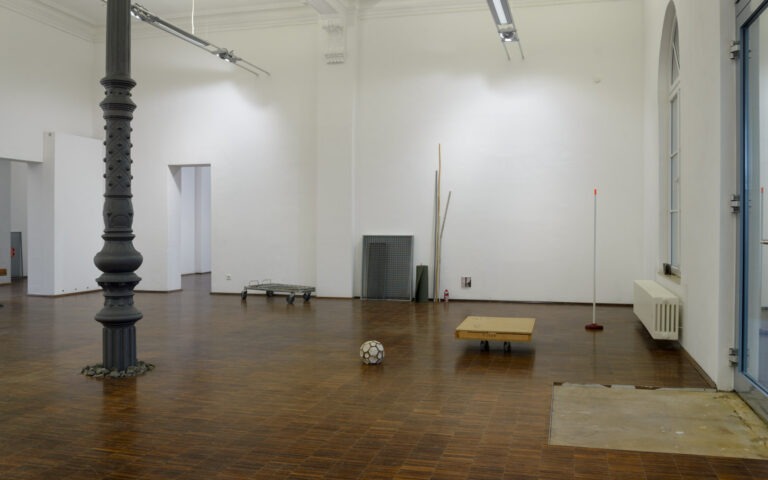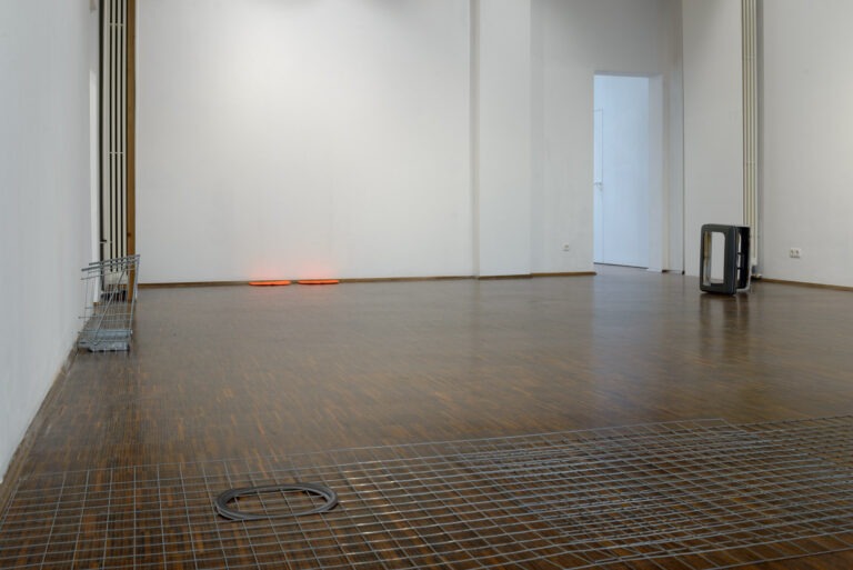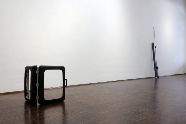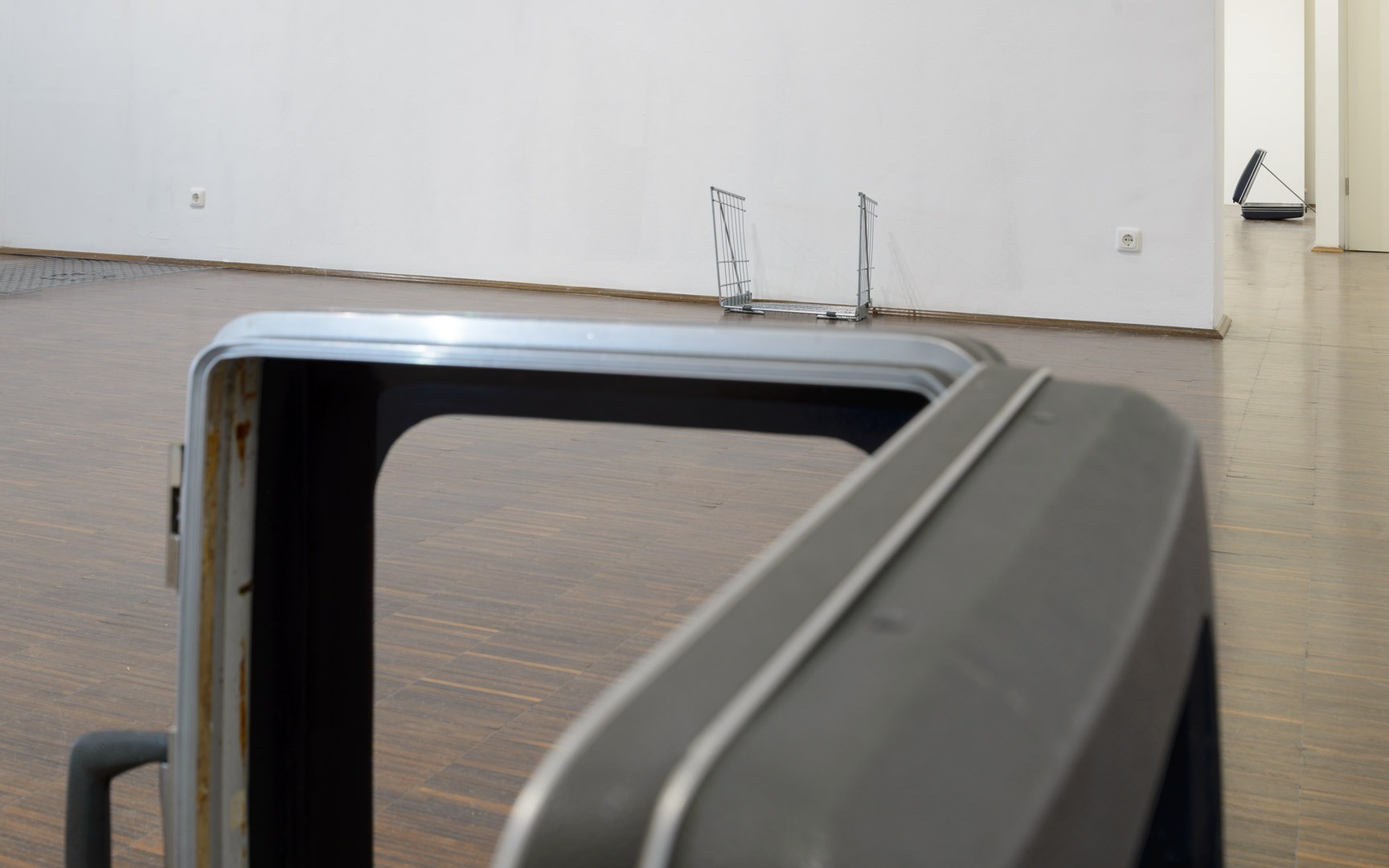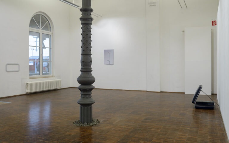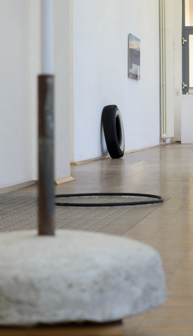 Den oft provisorischen Materialien und Fundstücken wohnt ein mobiles und temporäres Moment inne, das jedoch durch ihre präzise Setzung und Bearbeitung gekippt und verortet wird. Die Arbeiten oszillieren zwischen real und künstlich, fremd und vertraut, Ort und Bild zugleich. Sie vermitteln einen transitorischen Ort, der in Bewegung bleibt.